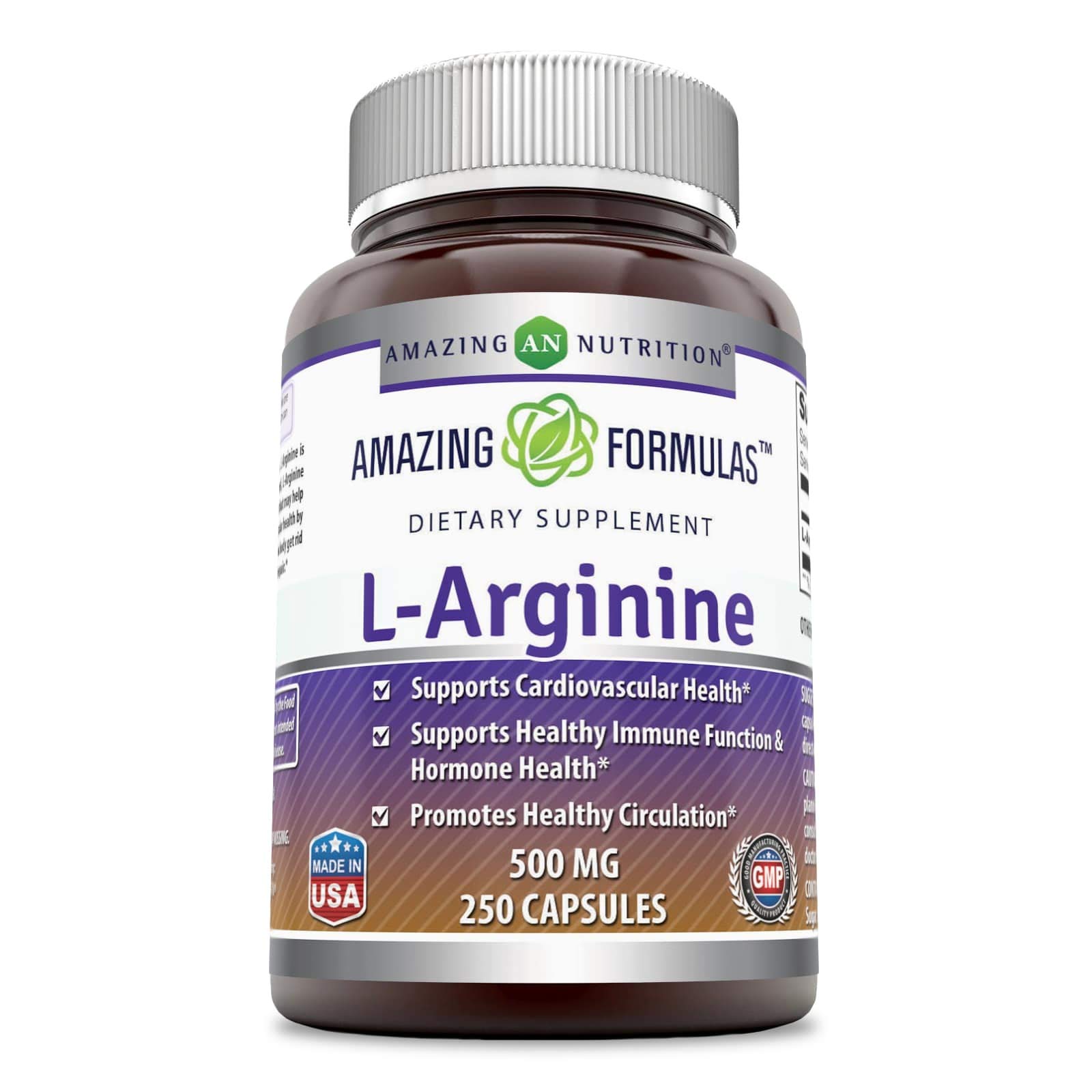 Amazing Formulas L-Arginine 500mg 250 Capsules Dietary Supplement - Best Amino Acid Supplements for Women & Man - Promotes Circulation and Supports ...