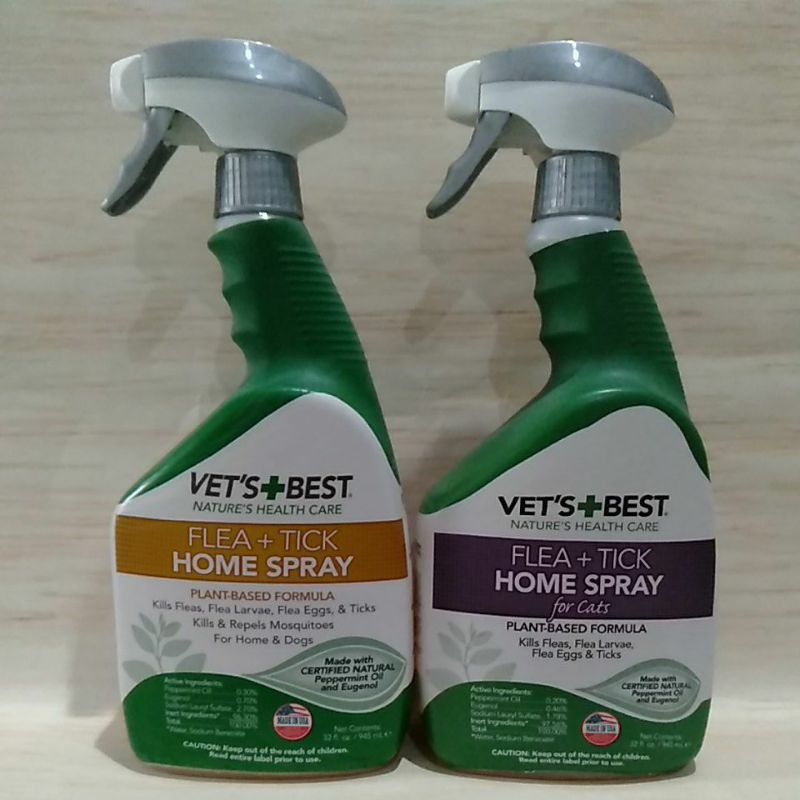 Vet's Best Flea and Tick Home Spray for Cats | Flea Treatment for Cats ... Declare war on fleas and ticks while keeping your home and family safe from harsh chemicals with Vet's Best Natural Flea and Tick Home Spray -- New for Cats! Our unique blend of certified natural oils kill fleas, flea eggs, and ticks by contact; and the non-staining formula can be used without fear on surfaces in your home.